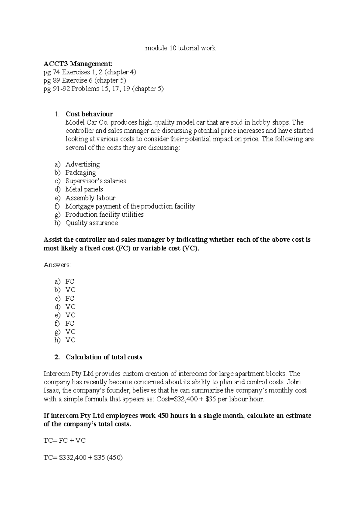 None of the above mentioned is a variable cost q3: Fixed costs differ from variable costs in the fact paid at set periods of each year, whilst variable costs are volume related and vary depending on quantity. Direct expenses include materials needed to manufacture a product, freight charges to transport product, and taxes related to the sale of. In operations, fixed costs are considered to be independent from any business activity. In accounting and economics, fixed costs, also known as indirect costs or overhead costs, are business expenses that are not dependent on the level of goods or services produced by the business. (a) a supermarket in your hometown; It costs exactly nothing to ignore people complaining on the forum regardless of how justified the complaints may be. On the other hand, the worker compensation cost for the office staff is usually a much smaller rate and that worker compensation cost will not be variable with respect to the number of units of output in the. This is a variable cost. Under which of these market classifications does each of the following most accurately fit? Usually trades below its conversion value. (d) the commercial bank in which you or your family has an account; Fixed costs are expenses that have to be paid by a company, independent of any specific business activities.